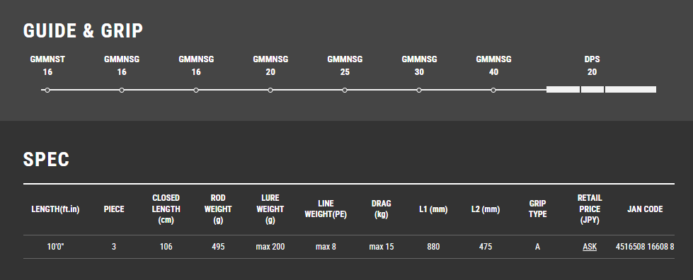 This is a very special rod series designed for expert anglers targeting big fish from the shore, such as Giant Trevally (GT), Amberjack, and big Dorado. The Okinawa Manbika features an X-wrapping graphite sheet from top to butt section, creating a super strong blank for casting large lures and dominating big fights. It is the rod of choice for professional shore jigging.